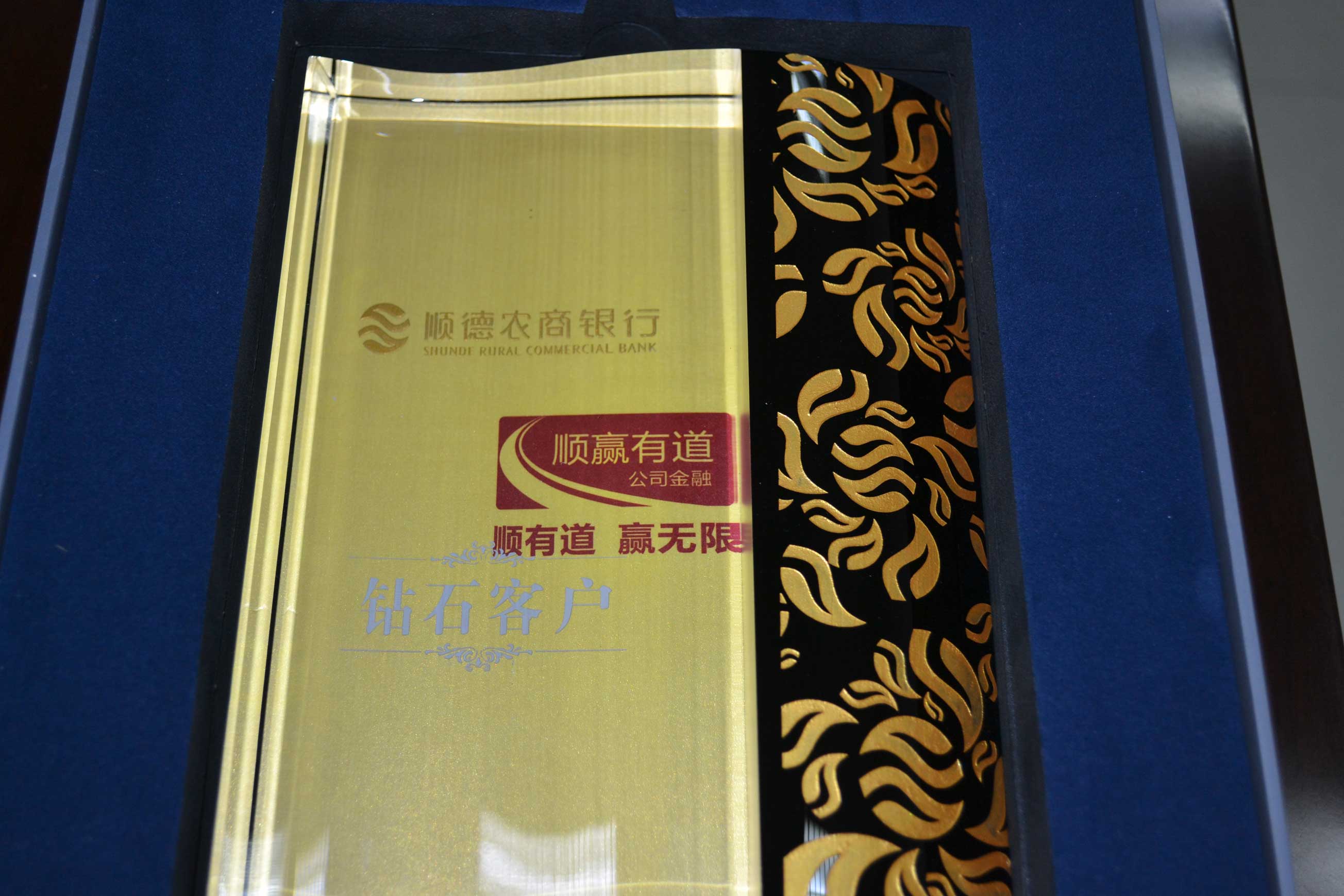 ——順威股份榮獲順德農商銀行“鉆石客戶”