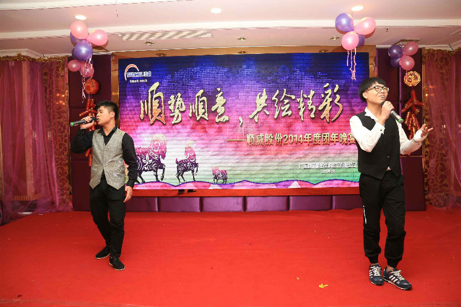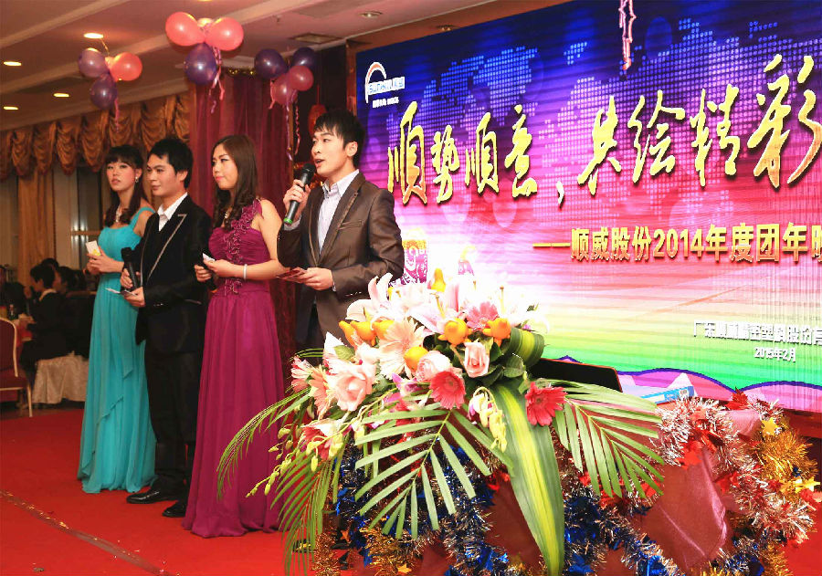 順勢順威,共繪精彩。作為公司年底的重大文化盛事,順威股份廣東區(qū)域2014年團年晚宴于2015年2月8日晚在容桂源興酒家圓滿落下帷幕。精心的晚會流程安排、演員們用心的表演、主持人默契的配合、節(jié)目的創(chuàng)新突破,使得整場晚會亮點紛呈,掀起了一輪又一輪的高潮。而順威股份董事長麥仁釗先生,順威股份董事、總裁王世孝先生等公司高層領(lǐng)導(dǎo)振奮人心的講話,更是描繪出順威股份2015年度工作的美好藍圖,明確了公司發(fā)展的方向,極大地鼓舞了公司員工斗志,給人以無窮的信心和希望。