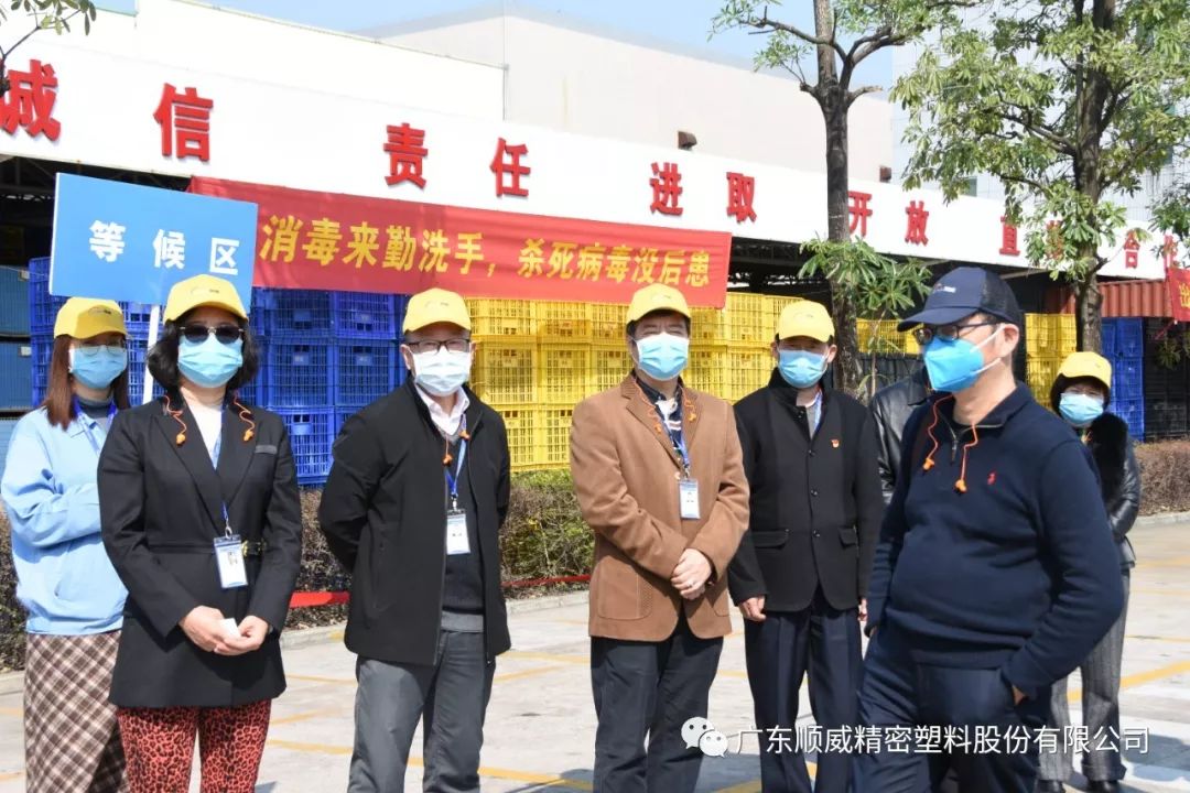 順威股份董事/總裁莫綺顏、董事/副總裁成再育、董事/副總裁/董事會秘書李笛鳴、工會主席/審計部總監童貴云、順德塑料分公司總經理范瑞強、順德模具分公司總經理龐利彬、集團戰略及商務中心/集團人力行政中心總監羅華、國內營銷中心總監助理/大客戶部高級經理王曉菲,一眾公司高管團隊在廠區廣場迎接中外媒體參觀團一行的到來。